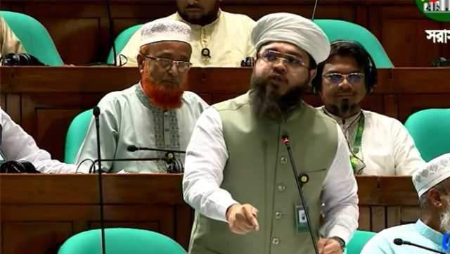 সরকারের গঠনমূলক সমালোচনার প্রতিশ্রুতি দিয়ে তিনি বলেন, সরকার ভালো কাজ করলে তারা প্রশংসা করবেন এবং ভুল করলে এই সংসদেই দাঁড়িয়ে কড়া প্রতিবাদ জানাবেন। সংসদে ‘বিসমিল্লাহির রহমানির রাহিম’ ও ‘লা ইলাহা ইল্লাল্লাহু মুহাম্মাদুর রাসুলুল্লাহ’ খচিত থাকায় তিনি সরকারের প্রশংসা করে বলেন, ৩০ থেকে ৪০ লক্ষ ওলামায়ে কেরাম তাদের কণ্ঠস্বর হিসেবে এই সংসদের দিকে তাকিয়ে আছেন।