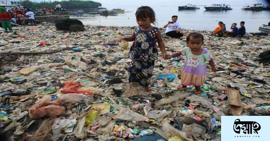 অন্যদিকে বিশ্বের সাগর-মহাসাগরে প্রতিবছর প্রায় আশি লাখ টন প্লাস্টিক বর্জ্য জমছে। সমুদ্রের স্রোত প্লাস্টিক বর্জ্য ভাসিয়ে নিয়ে যায় দূরদূরান্তে। ২০১৮ সালে প্রকাশিত জাপানিজ গবেষণা রিপোর্ট জানিয়েছে যে ফিলিপাইনের অদূরে প্রশান্ত মহাসাগরের গভীরতম মারিয়ানা ট্রেঞ্চে প্লাস্টিকের ব্যাগের অস্তিত্ব পাওয়া গেছে। অপর এক গবেষণা তথ্য অনুযায়ী, প্লাস্টিক বর্জ্যের ক্ষুদ্রতম ভগ্নাংশ বা ‘মাইক্রোপ্লাস্টিক’ বায়ুতাড়িত হয়ে পর্বতচূড়ায় মিলছে। বায়ুদূষণের অন্যতম ক্ষতিকর উপাদান যে ভাসমান বস্তুকণা, ‘মাইক্রোপ্লাস্টিক’ সে তালিকায় যোগ হচ্ছে বিশ্বজুড়ে।